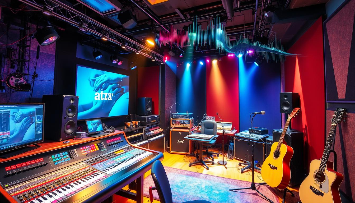 Monitores e headphones profissionais são cruciais. Eles garantem que o som seja preciso e detalhado.